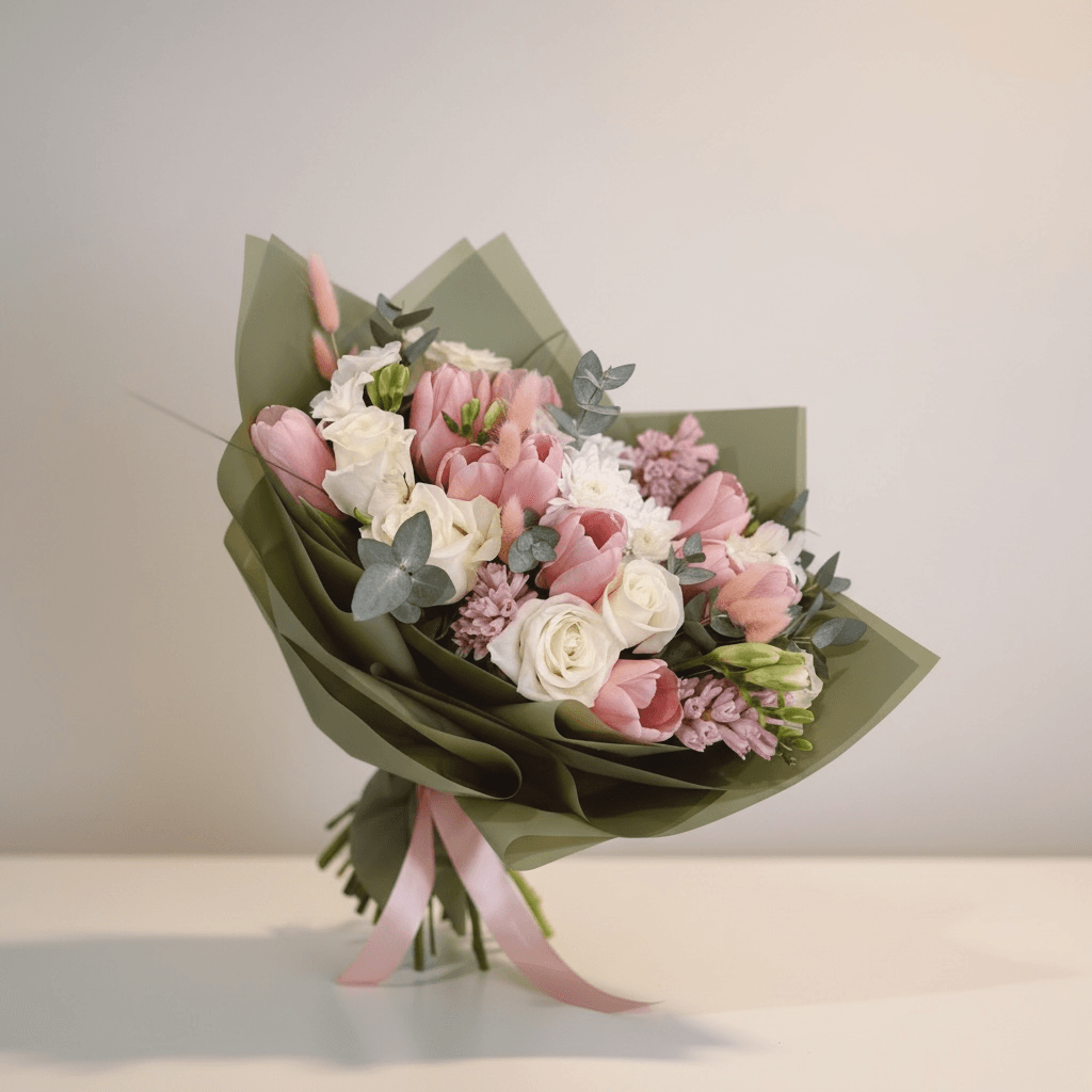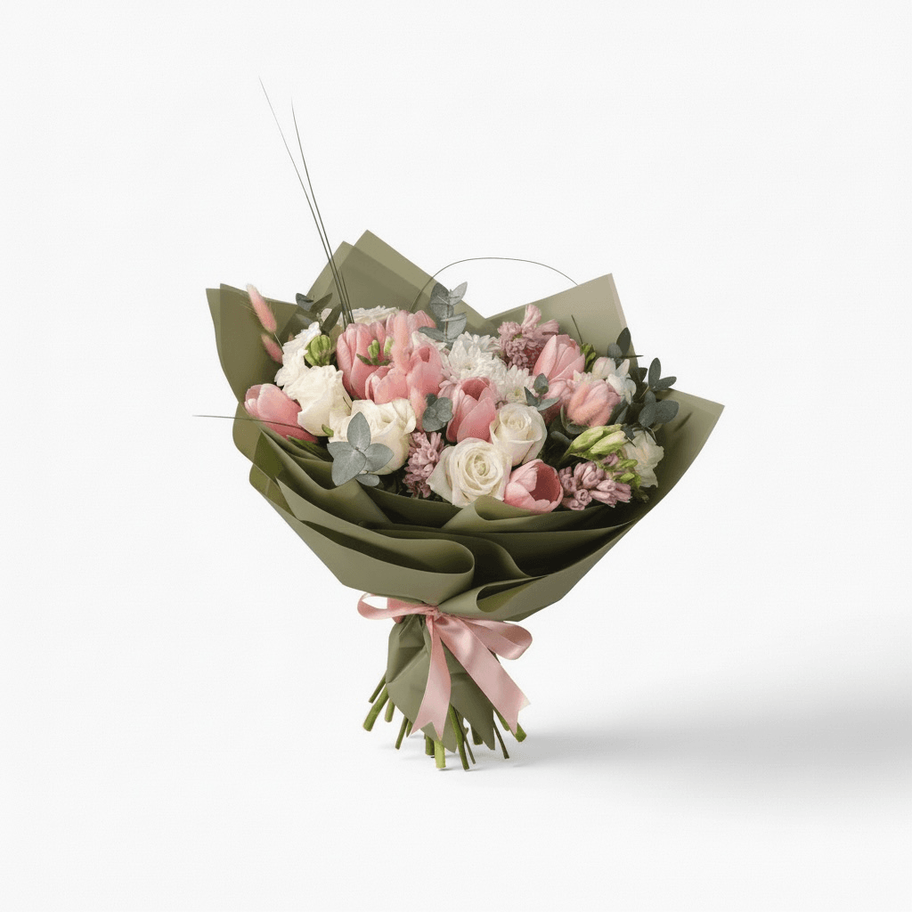 Acest Buchet de flori mixte- Pastel’amore dă naștere unui ansamblu floral de vis. Fie că alegi să le oferi cuiva drag sau să le cumperi pentru tine, un Buchet de flori mixte- mi amore, nu va dezamăgi niciodată prin frumusețea și puritatea sa naturală.