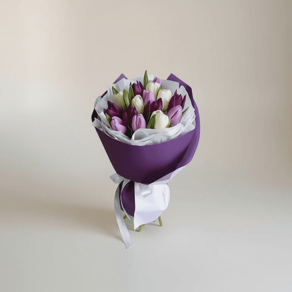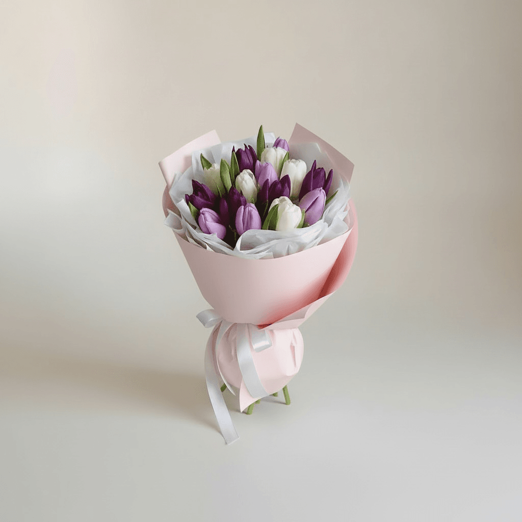 Comanda un buchet cu lalele roz si mov- Pretty spring cu livrare intacta la domiciliu. Floraria Avenue des Roses livreaza flori la domiciliu in maxim 24H