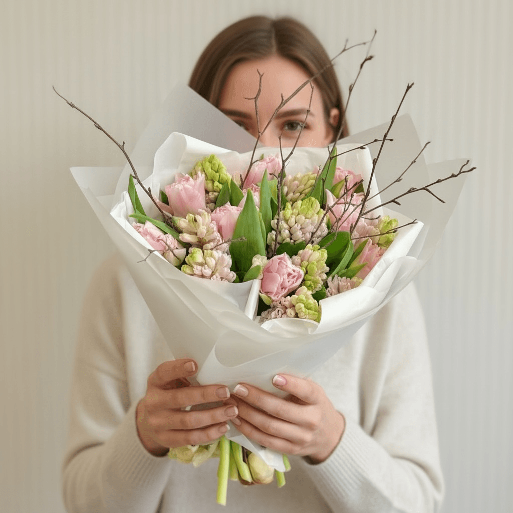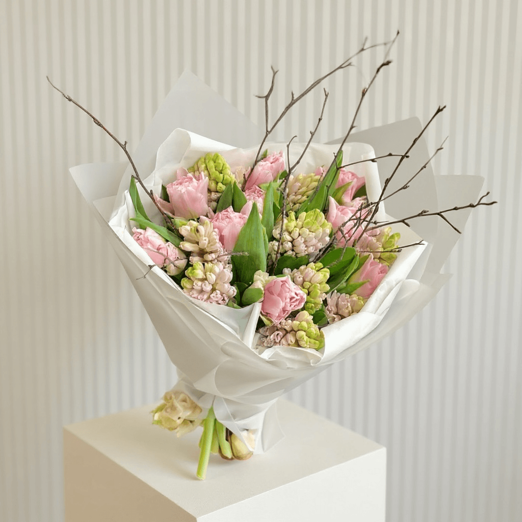Comanda un Buchet Lalele Roz & Alb cu livrare intacta la domiciliu. Floraria Avenue des Roses livreaza flori la domiciliu in maxim 24H