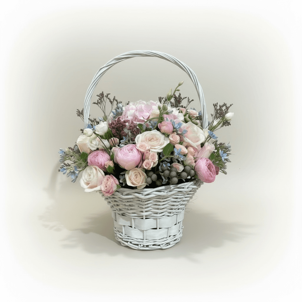 Descoperă bucuria primăverii în acest minunat coș de flori parfumate! Vibrante și proaspete, aceste flori te vor fermeca cu aromele lor delicate și culorile lor vii. Oferă un cadou perfect pentru a celebra reînvierea naturii și pentru a aduce zâmbete de bucurie celor dragi